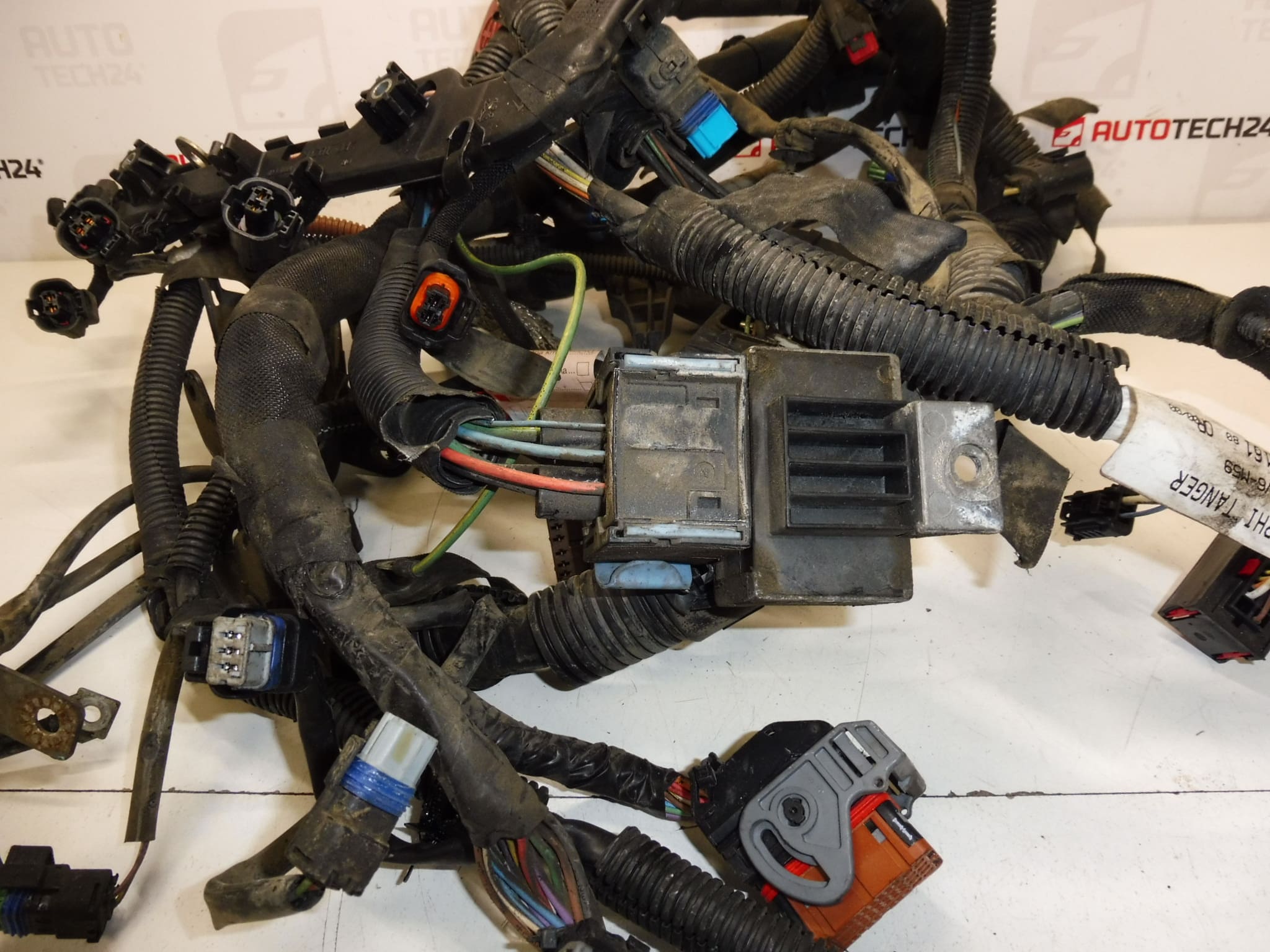 Oryginalna wiązka przewodów silnika głównego do silników PSA 1.6 HDI (66 kW). Jest to okablowanie OEM usunięte z Citroëna Berlingo 2007, odpowiednie jako zamiennik w przypadku uszkodzenia oryginalnego okablowania, złączy lub przerwanych przewodów. Kluczowe numery części: 9664716180 i 6569.PZ (6569PZ).